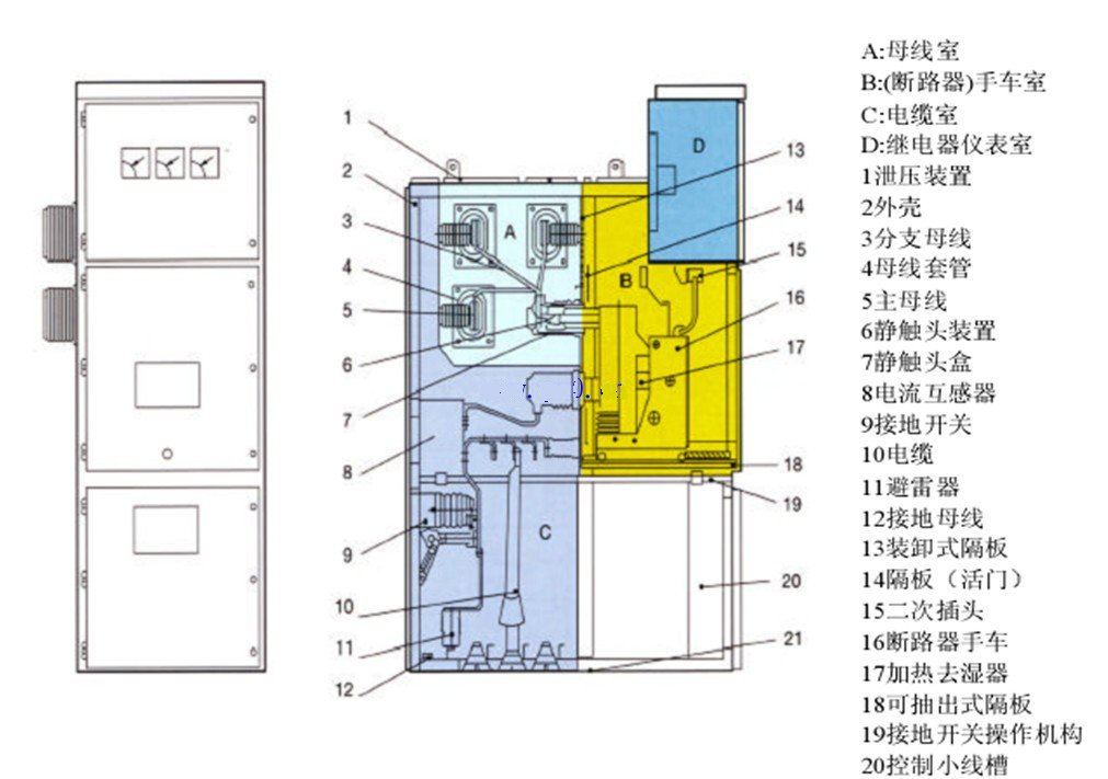 等功能。柜體由殼體、電器元件(包括絕緣件)、各種機(jī)構(gòu)、二次端子及連線等組